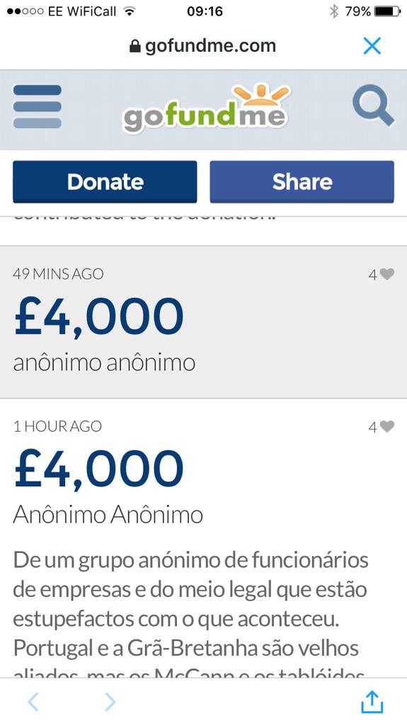 May I also commend the two donors for having managed to make their Portuguese donations equal exactly £4000 - but why oh why donate via the GoFundMe site.  The cost of doing so is at least £400 - (5%) and if the money was collected in euros and converted to GBP, there would be an exchange rate cost typically of 1% to 2%.  (an extra £80 to £160).